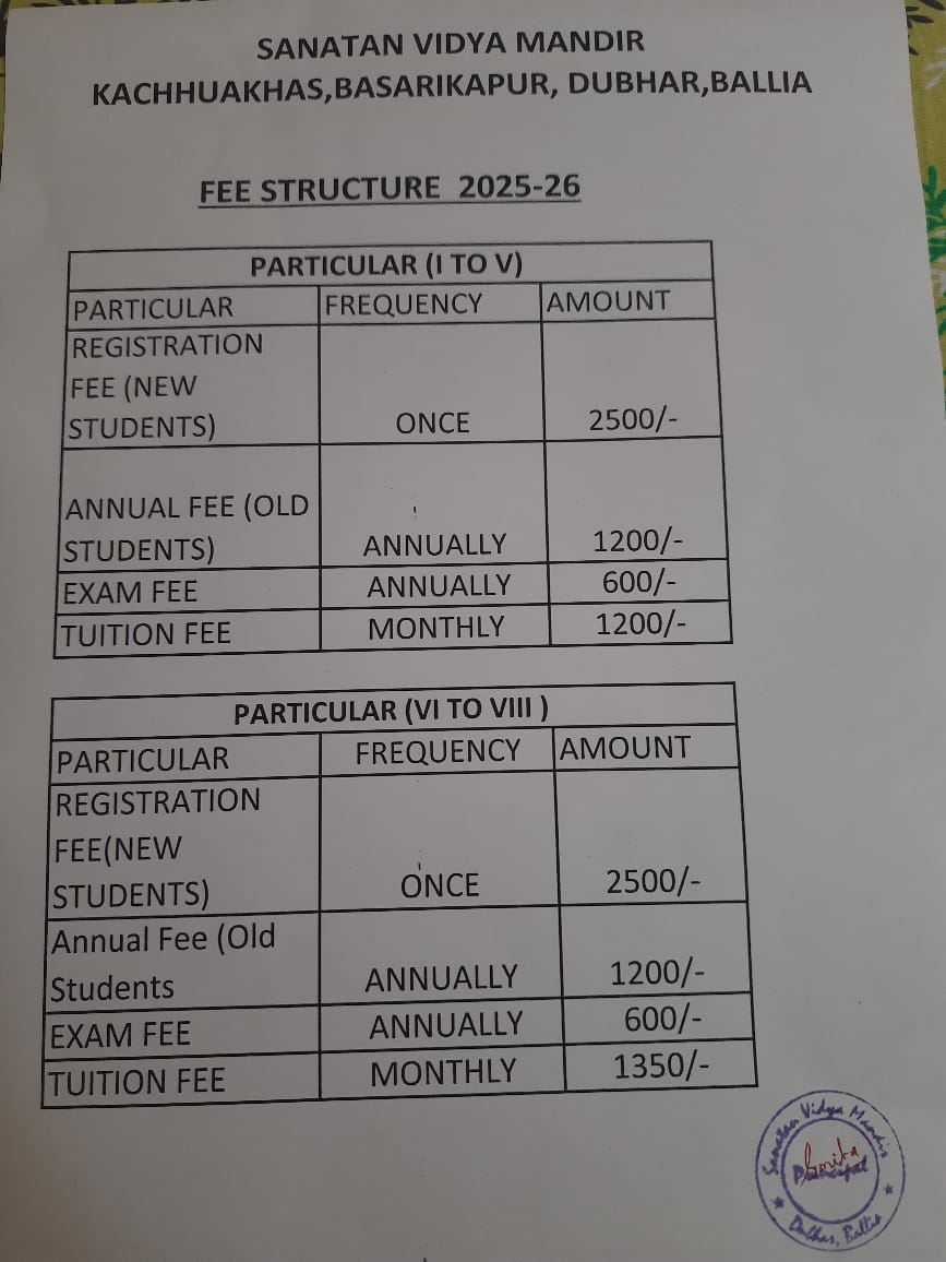 | 1 | Fee Structure of the School | Link |